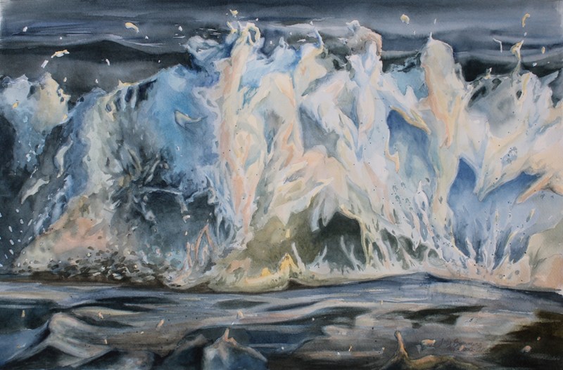 Water is vital to our very being. It is cleansing, washing away dirt and grime. But out of control water can be destructive. In some creation mythologies water represents the chaos before creation, but becomes a life-giving source when order is established. Water is also beautiful – a mirror reflecting the light and colors around it and ever changing. This poetic beauty of water and its symbolic nature are the major sources of inspiration for the paintings in my water series.