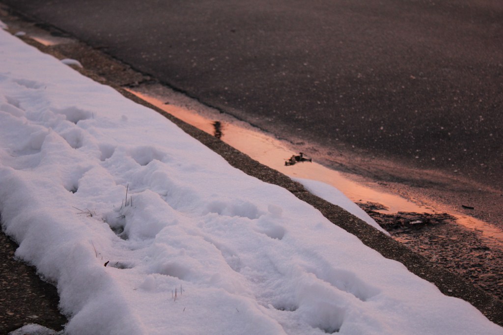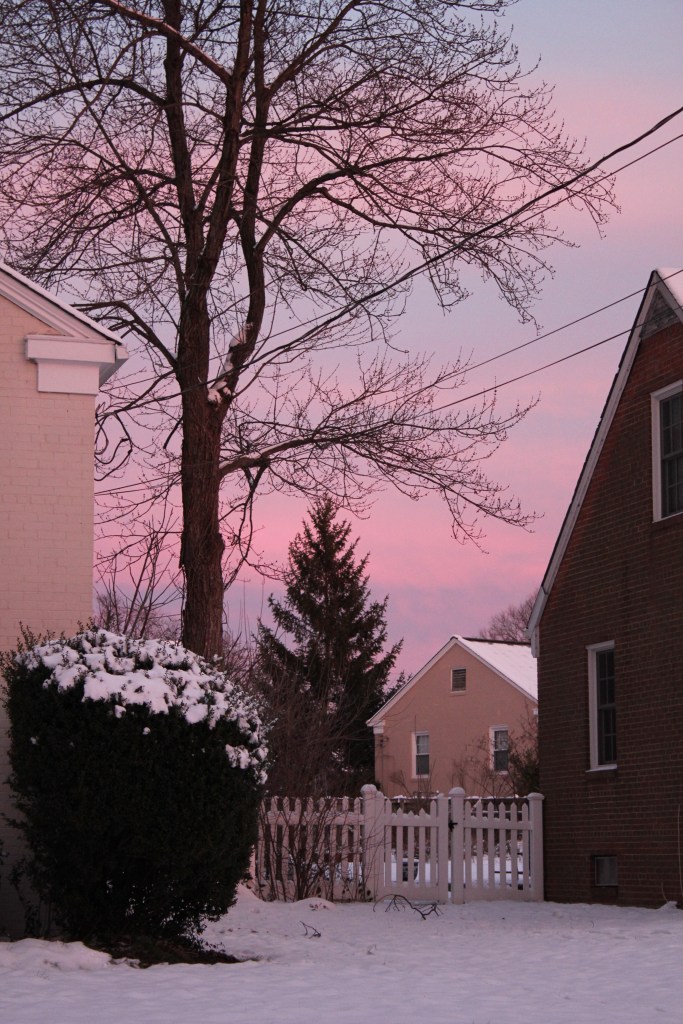 I’ve been reading and ruminating on T.S. Eliot’s Four Quartets recently, and the snowfall brought the imagery in this first section of “Little Gidding” to mind. I went out into the cold several times to ramble through the snow and take pictures. The world was aglow “with frost and fire/ The brief sun flames the ice, on pond and ditches.” I found this lonely, wilted rose in my garden covered in ice. It seemed poetic to me, this blossom left from the warmer months covered in the “transitory blossom of snow”.